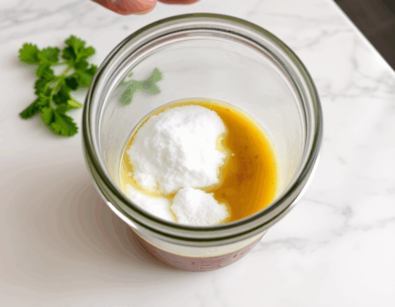 1. Combine the dressing ingredients in a jar, starting with 1.5 tablespoons of sugar, and shake well to blend. Adjust the sweetness to your preference.