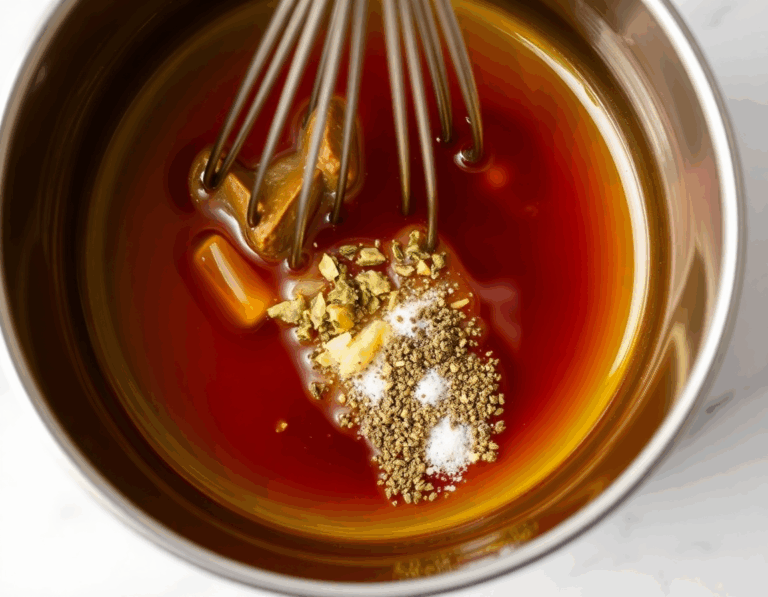 - Prepare the dressing by whisking together olive oil, red wine vinegar, minced garlic, dried oregano, Dijon mustard, salt, and pepper in a small bowl.