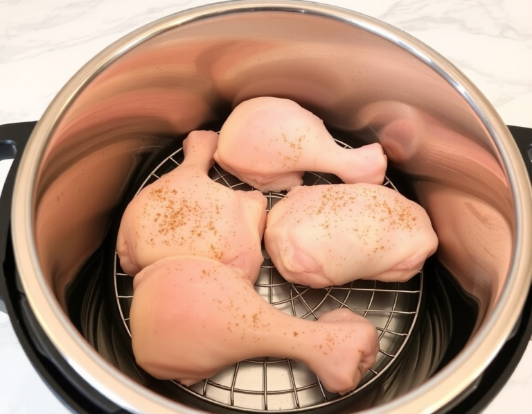 - Arrange the seasoned chicken legs on the trivet in the Instant Pot.